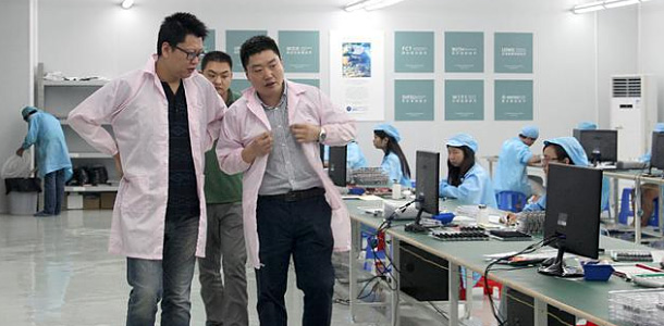 Ali car division chairman Mr.Shi jian in the company of JADO China president Mr.Wang jie visit JADO China (Shenzhen production base) , gradually visit lens workshop, SMT workshop, assemble workshop etc production process.