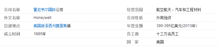以上內容來自于百度百科,欲了解更多關于霍尼韋爾,可瀏覽其官方網頁。http://www.honeywell.com.cn/