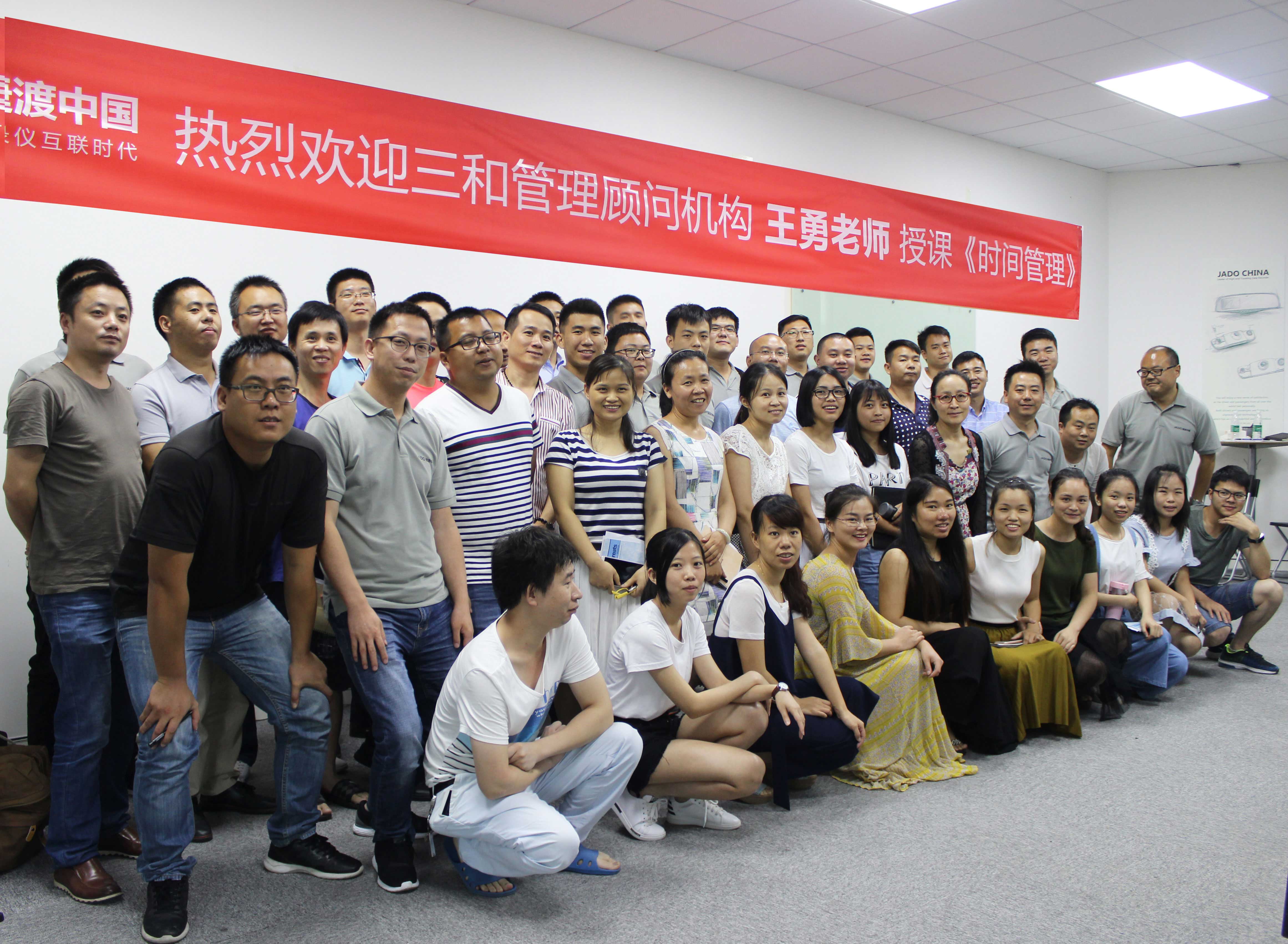 2017年7月2日,JADO捷渡智能(中國)研修院在深圳生產基地多功能會議室,邀請三和管理顧問機構王勇老師,對JADO捷渡智能(中國)研修院人員進行第一節企業內訓課程《時間管理》,并通過直播平臺在線直播。