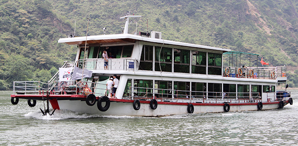 中午我們登上了"捷渡號(hào)"邊用餐邊瀏覽沿途各異山峰,這里青山水秀、祥云飄逸、層巒疊嶂、若隱若現(xiàn),游走在青山綠水之中,焉能不醉?