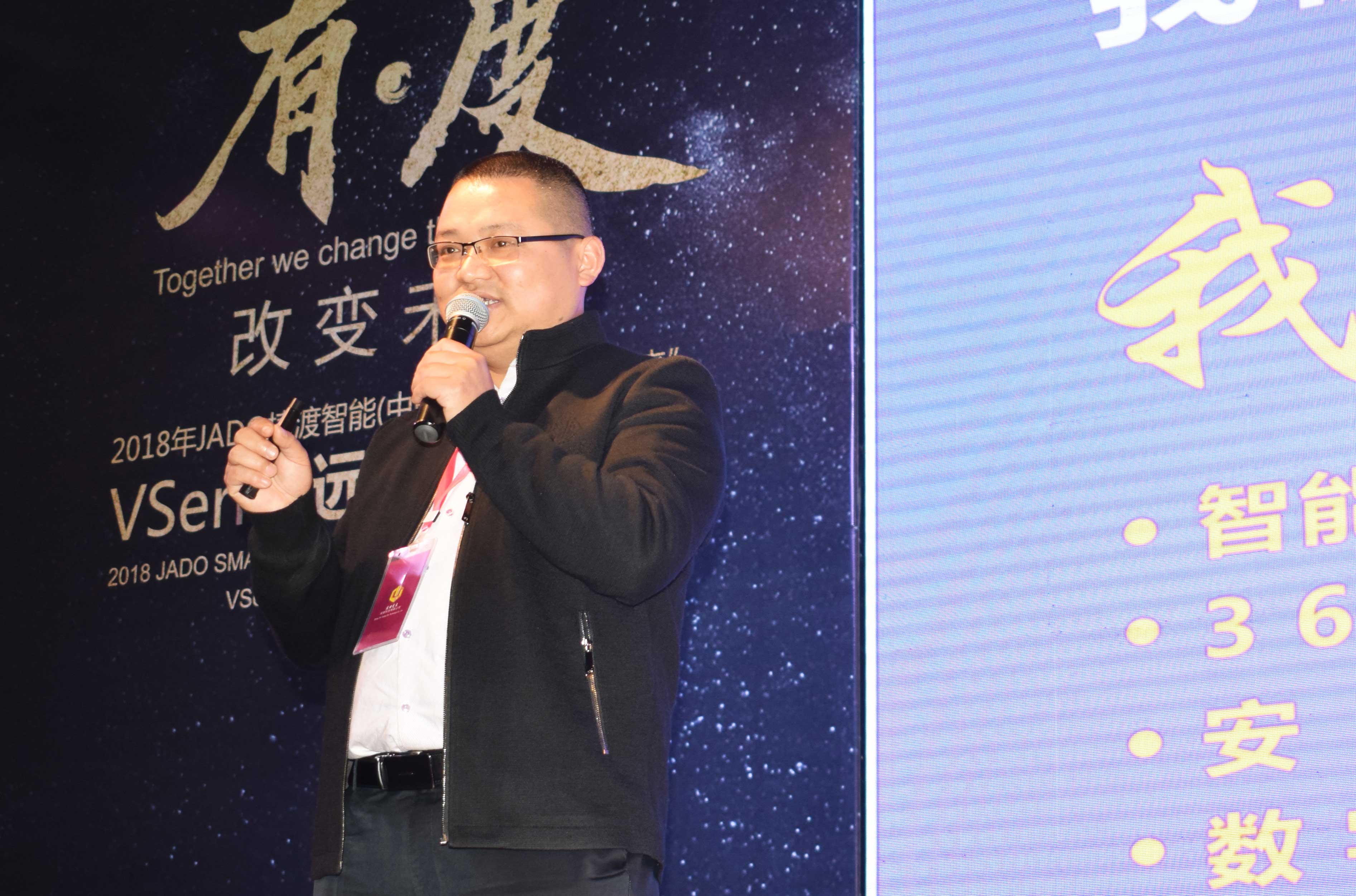 隨后,JADO捷渡智能(中國)營銷中心總經理陳問文先生從大企業、全渠道、新產品、新形象、品牌營銷推廣五大方面深入剖析新一年的發展規劃,2018年將作為“營銷軍事化管理強化年”,五大戰區強力主導幫助終端渠道快速成長。