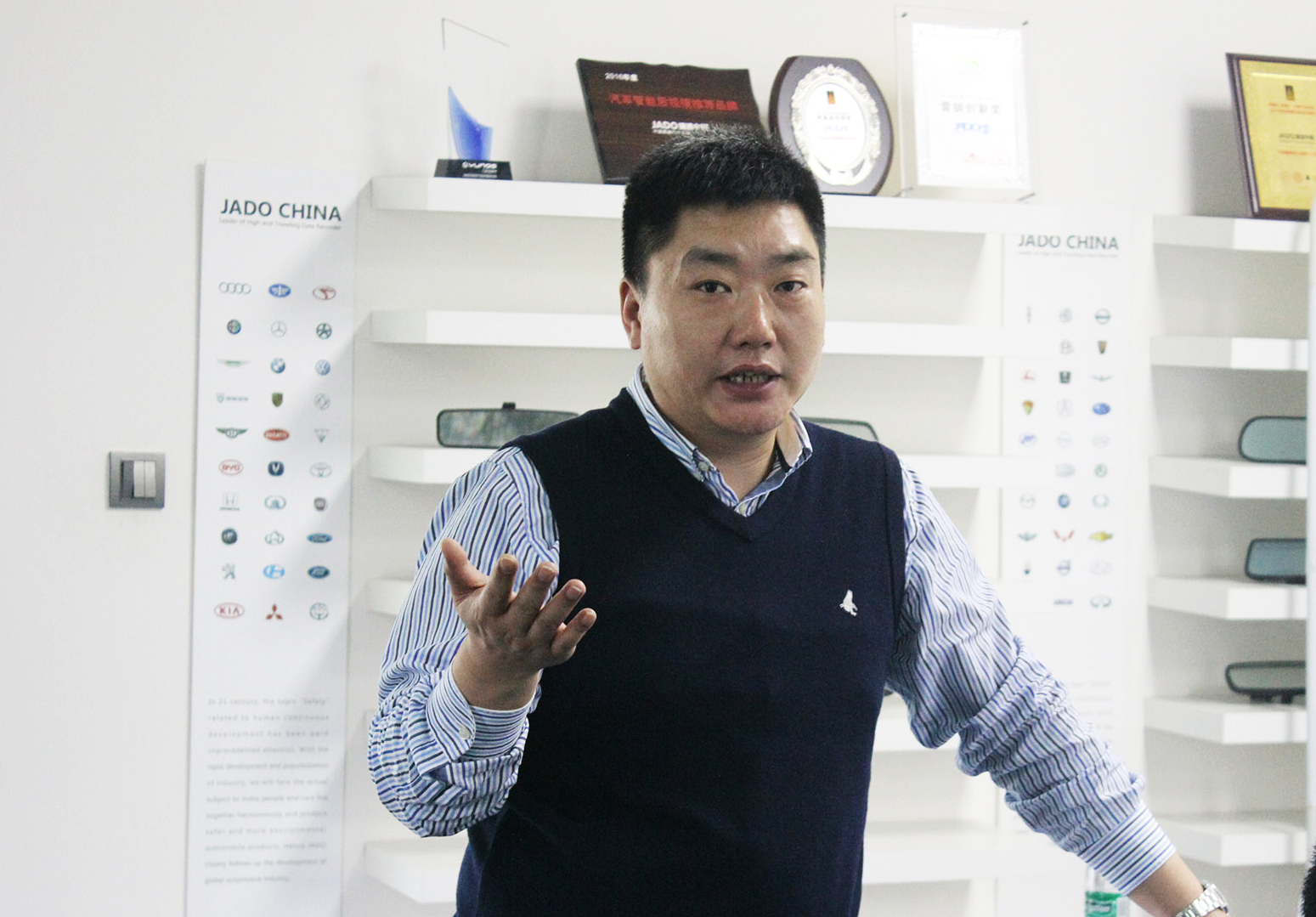 會議首先由JADO捷渡智能(中國)營銷中心總經理陳問文先生致辭講話,并對行車記錄儀智能產品市場現狀以及智能流媒體板塊的機遇做了詳細分析,同時闡述了公司新研發的VSeries遠界3的產品優勢。