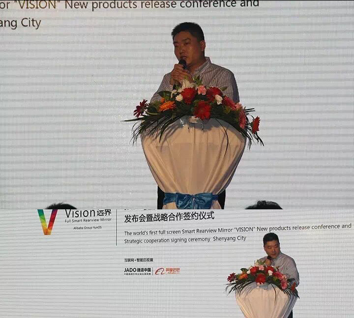 作為JADO捷渡中國戰略合作伙伴——沈陽眾維汽車用品有限公司總經理董天宇先生,隨后登臺講話:“對Vision遠界在遼寧省的未來發展充滿信心,也對作為一款全屏的智能后視鏡產品,將會對市場以及每一個車主帶來的改變表示期待。”