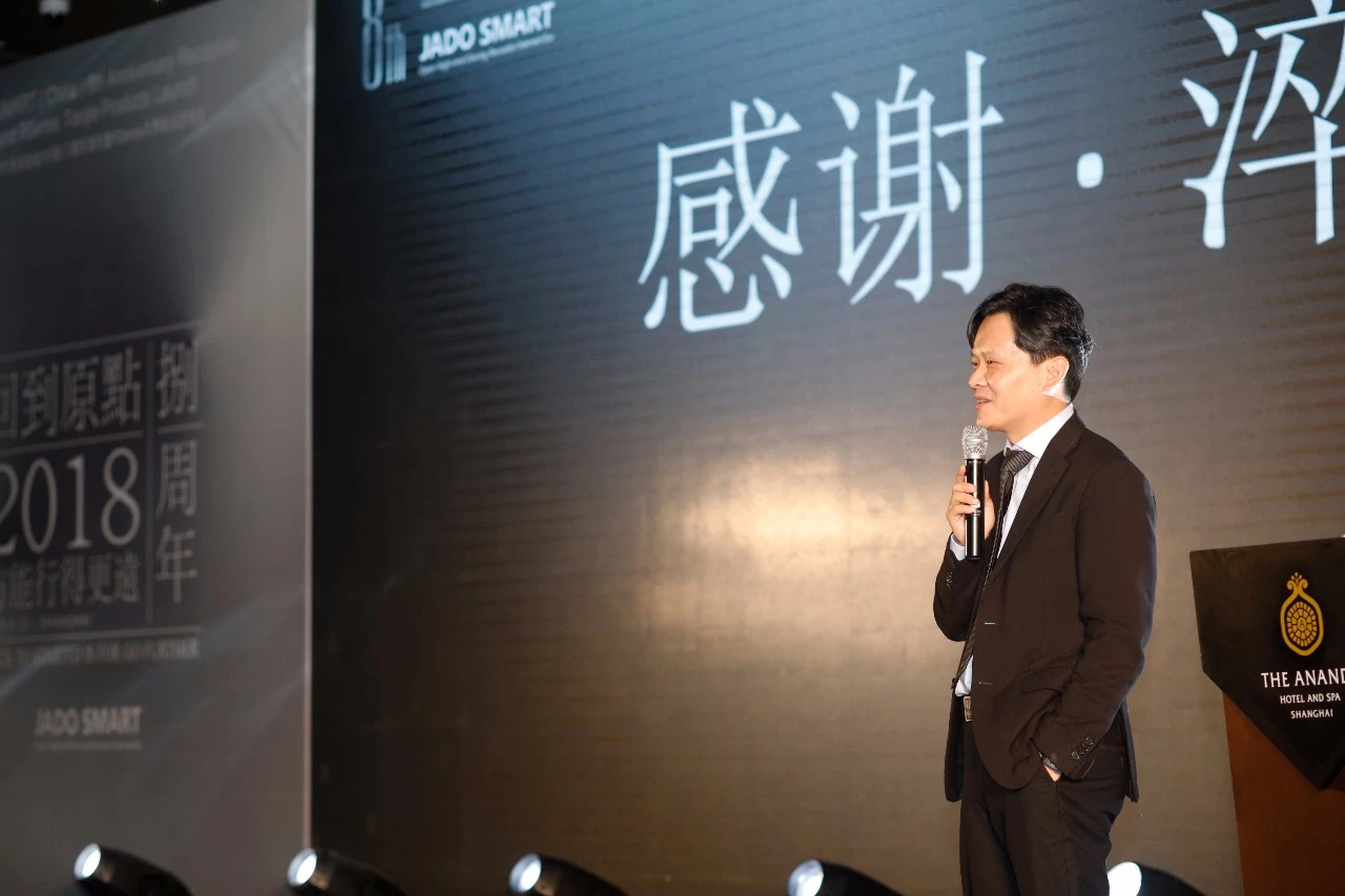 為了慶祝這一特殊的日子,2018年08月22日,以“回到原點 方能行得更遠(yuǎn)”為主題的“JADO捷渡智能(中國)八周年酒會暨RSeries天界新品發(fā)布會”在中國·上海阿納迪酒店隆重舉行。