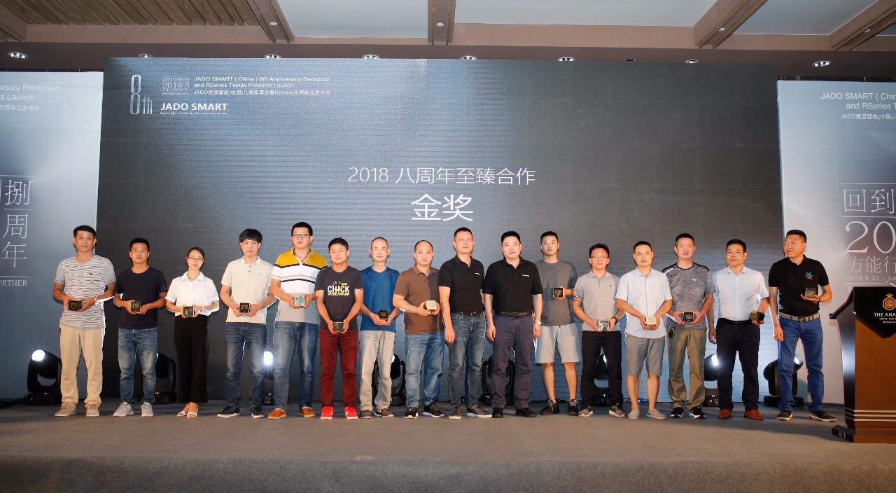 會上還隆重頒發(fā)了JADO捷渡智能(中國)八周年慶“至臻金獎”,以表彰合作伙伴在過去的八年中所做出的努力和取得的成績。