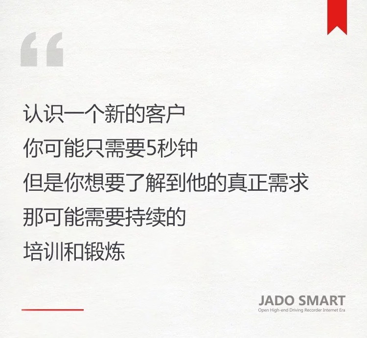 怎樣了解客戶的真實(shí)需求?從而讓客戶主動接受你推薦的產(chǎn)品。2018年9月5日,帶著這些疑惑和思考,JADO捷渡智能(中國)4S集團(tuán)交流培訓(xùn)會在期待中拉開帷幕。