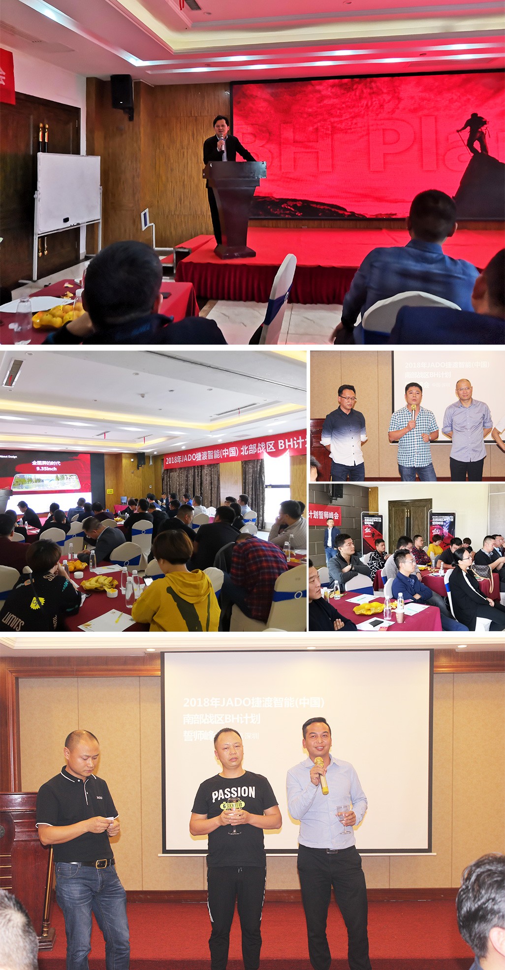 2018年10月14日、18日,JADO捷渡智能(中國)分別在中國·深圳、合肥兩地舉行了主題為“當我上場,好戲開場”的2018年度JADO捷渡智能(中國)南部、北部戰區決勝終端誓師峰會。到場嘉賓有:JADO捷渡智能(中國)董事長王杰先生、營銷中心總經理陳問文先生、營銷中心副總經理劉赟先生以及來自全國的戰略合作伙伴超過100人。