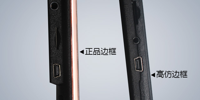 看產品側面,僅做工工藝就可以很明顯地看出正品捷渡 D610 與高仿的區別: